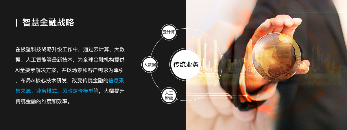 智慧金融是依托于互联网技术,运用大数据、人工智能、云计算等金融科技手段,使金融行业在业务流程、业务开拓和客户服务等方面得到全面的智慧提升,实现金融产品、风控、获客、服务的智慧化。